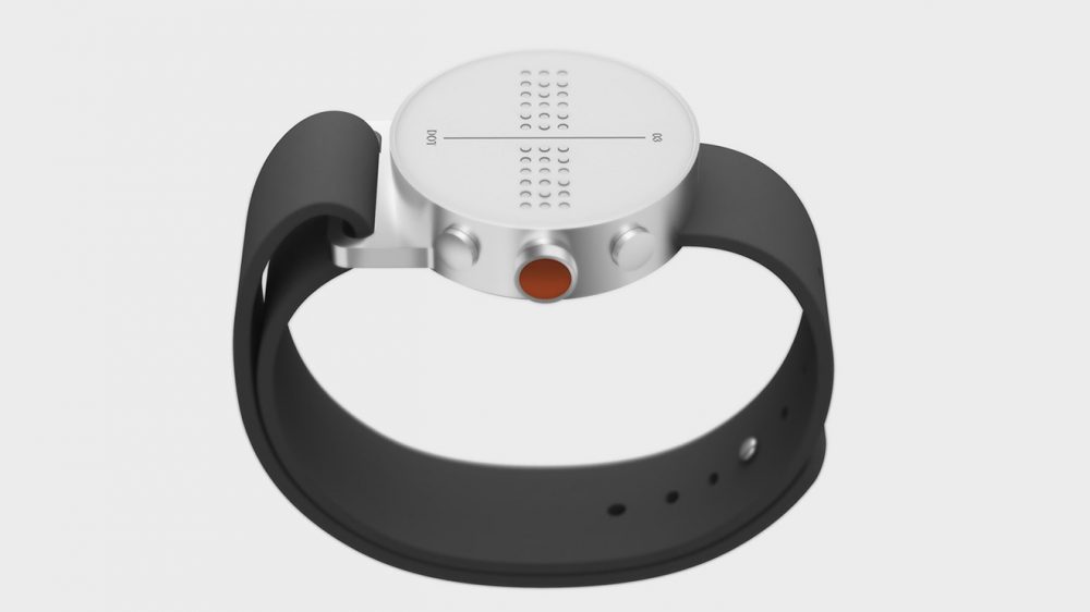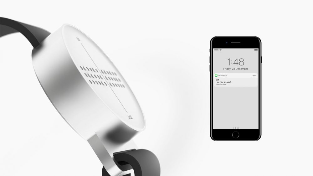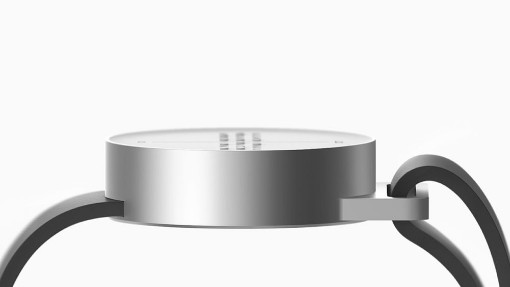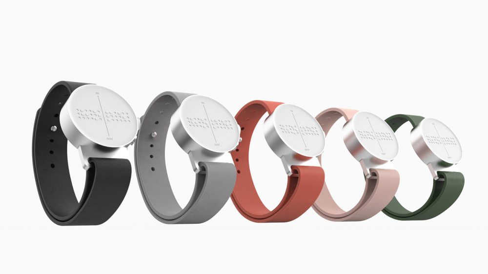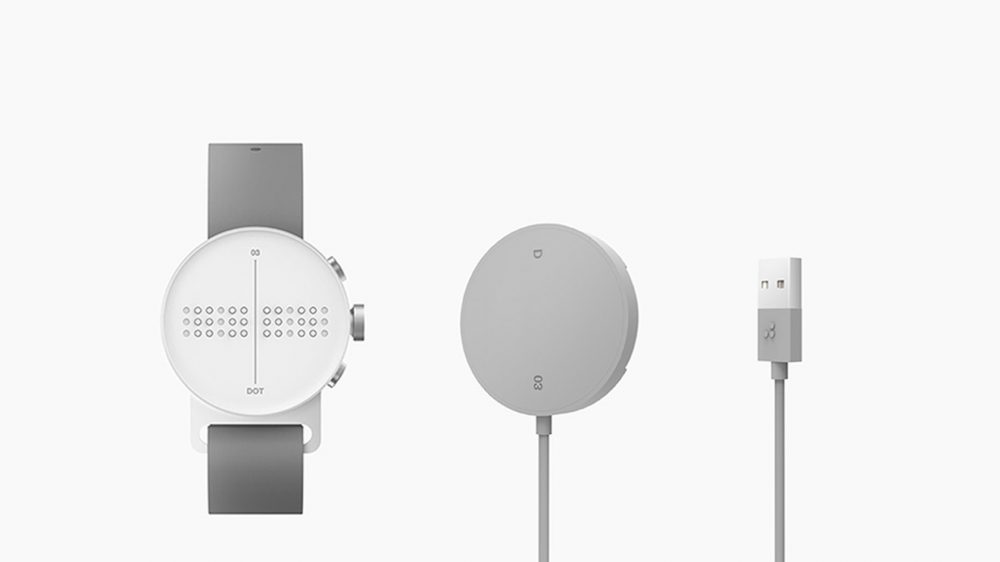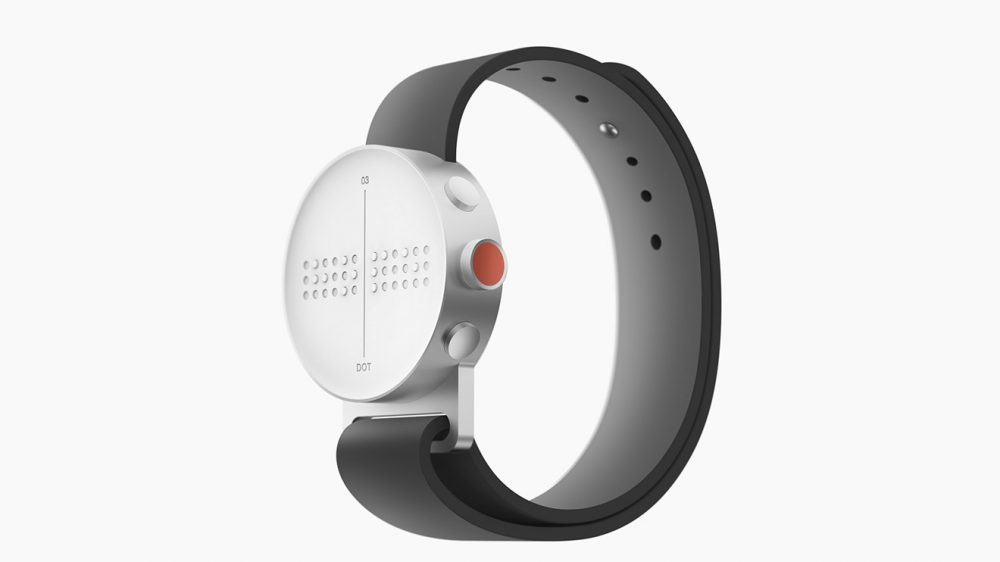 Dot, sadece sunduğu özelliklerle değil tasarımıyla da kendini güncellemiş. Klasik saatlerde olduğu gibi yuvarlak bir gövdeyle gelen cihazın üstünde selefinde olduğu gibi küçük noktalar yer alıyor. Bu noktalar görme engelliler için geliştirilen alfabeye göre gerektiğinde yukarı doğru çıkarak yazıları oluşturuyor.