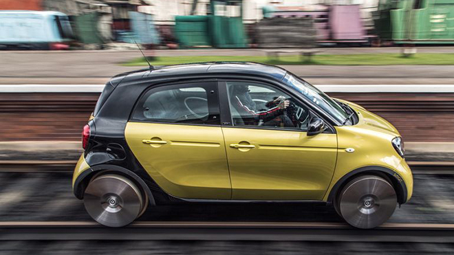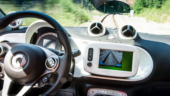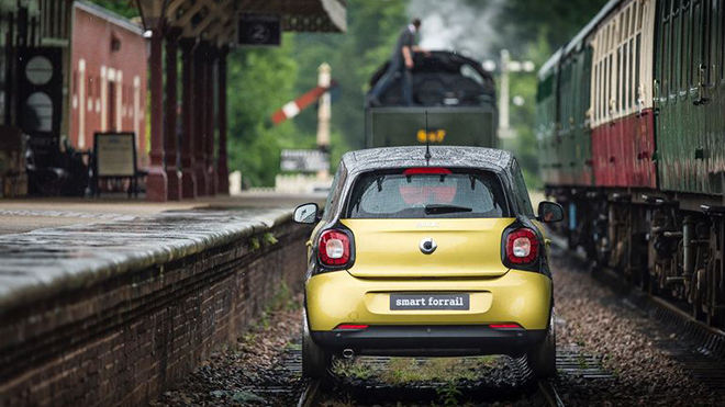 Smart otomobilin ve trenin bir birleşimi olarak düşünebileceğimiz bu araçta tren yolunda hareketi sağlamak üzere 79 kilogram ağırlığında ve 56 cm boyutunda özel tekerler kullanılıyor. İngiliz tren mühendisliği uzmanı Interfleet ile ortaklaşa gerçekleştirilen çalışmayla ortaya çıkan otomobilde direksiyonun iptal edildiği ve ön aksların sabitlenerek güvenliğin artırıldığı belirtiliyor. Böylece sağa veya sola hareket etme imkanı olmayan tekerlerin yoldan çıkma ihtimali de engellenmiş oluyor. Yapılan testlerde umut verici görünen otomobilin düşük hızlarda 16 kilometre boyunca raydan çıkmadan ilerleyebildiği söyleniyor. Testler sırasında lisanslı bir makinistin otomobili yönettiği de söylenenler arasında.
