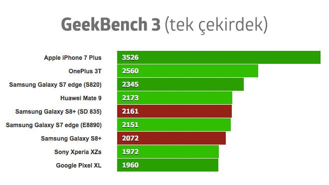Samsung her yıl telefonlarında iki farklı işlemci kullanıyor. Qualcomm’un Snapdragon işlemcilerini ve kendi ürettikleri Exynos işlemcileri kullanan Samsung, belirli bölgelere farklı modellerin dağıtımını yapıyor. Türkiye’de ise Exynos işlemcilere yer veriliyor. Yapılan testlere bakılırsa Türkiye’deki Galaxy S8 kullanıcıları Amerika’daki kullanıcılara göre daha şanslı olabilir.