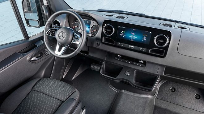 Mercedes Sprinter’in kokpit bölümüne baktığımızda artırılan malzeme kalitesiyle birlikte karşımıza boyutu 10,25 inç olan ve binek modellerde de gördüğümüz HD multimedya ekran çıkıyor. Sesli komutları algılayan sanal asistan desteğiyle kullanıcılarına binek sınıftaki kaliteyi hissettirme iddiasında olan bu ekranla birlikte ergonomisi ciddi oranda iyileştirilmiş elektrikli koltuklar, akıllı telefonlar için kablosuz şarj desteği, elektronik klima, anlık bilgileri kontrol ederek kullanıcılara bilgi akışı sağlayan Mercedes Pro servisi gibi özellikler öne çıkan parçalar arasında. Elektronik destek kısmında da binek segmenti aratmadığını gördüğümüz yeni Sprinter’da, 360 derece görüş desteği sunan park pilotu, aktif fren asistanı ve aktif şeritte tutma asistanının da sunulduğunu belirtmeden geçmeyelim. Haziran ayından itibaren sokaklara çıkmaya başlayacak olan yeni Mercedes Sprinter’in Almanya’daki başlangıç fiyatı yaklaşık 20.000 euro olacak.