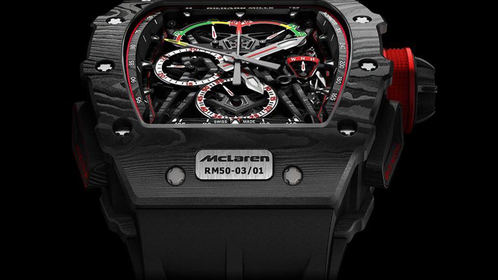 Richard Mille RM 50-03 olarak adlandırılan saat 40 gramdan daha hafif tasarımıyla göze çarpıyor. Saatin bu kadar hafif oluşuna hem oldukça dayanıklı hem de oldukça hafif malzemeler katkı sağlıyor. Titanyum ve yelken malzemeleri üretimiyle uğraşan İsviçreli Createx of Cosso şirketi tarafından bulunan TPT karbon (Thin Ply Technology) malzemeleri sayesinde oldukça hafif olan kronograf saatte aynı zamanda grafen olarak adlandırılan bir malzeme de kullanılıyor. Bu malzemenin paslanmaz çelikten yaklaşık 6 kat daha hafif olduğu ve grafen malzemesinin hafif oluşunun yanında paslanmaz çelikten 200 kat daha dayanıklı olduğu belirtiliyor. McLaren-Honda F1 araçlarındaki süspansiyon yapısından ilham alan saat, dünya genelinde sadece 75 adet üretilecek. Richard Mille butiklerinde saat tutkunlarının beğenisine sunulacak bu özel saatin fiyatı ise dudak uçuklatacak cinsten. Richard Mille RM 50-03’ün satış fiyatı tam tamına 1 milyon dolar.