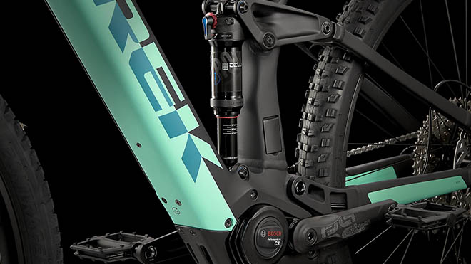 Trek’in elektrikli dağ bisikletlerinde Tur modu yerine özel bir eMTB Lite modu bulunuyor. Bu özellik kullanıcılara daha doğal güç iletimi ve daha uzun bir pil ömrü sağlıyor. Akıllı eMBT modu ise destek miktarını araziye göre otomatik olarak ayarlayabiliyor. Bisiklette bununla birlikte Aktif Fren Pivotu özelliği de yer alıyor. Bu özellik daha güvenli kontrole yardımcı oluyor. Kadroya destek veren Knock Block özelliği ise bir çarpışma anında gidonun dönmesini engelliyor.