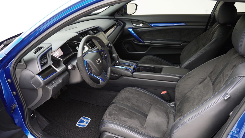 Mad Industries ekibi Tjin ekibine ek olarak aracın sürüş karakterine yeni bir boyut katan altyapı değişiklikleri üzerine yoğunlaşmış. Mavi üzerine siyah olarak tercih edilen renk kombinasyonuyla dikkat çeken Mad ekibinin Civic Coupe’si, stok modele ek olarak dahil ettiği karbonfiber kitlere, arka tampon tasarımına ve merkezde konumlandırılmış egzoz tasarımına dikkat çekiyor. İç tasarım hatları ve kokpitte, dış tarafta hakim renk olan mavinin çizgisel dokunuşlarına yer veren Mad ekibi bunlara ek olarak siyah deri döşemelerle premium bir iç tasarım vadediyor.
