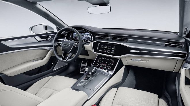 A7’nin kapılarını açıp içeriye girdiğimizde Audi’nin belki de rakipleri arasında en öne çıkan parçası olan kokpitiyle karşılaşıyoruz. Dışarıda kullanılan geometrik çizgilere atıfta bulunarak oluşturulan kokpitte sesle kontrol edilebilen multimedya ve 10,1 inç’lik sürücü ekranı bulunuyor. 12,3 inçlik Audi Sanal Kokpit teknolojisiyse opsiyonel olarak satın alınabiliyor. Büyüklüğü 8,6 inç olan alt bölümdeki ekrandaysa aracın kliması başta olmak üzere temel fonksiyonu her zaman olduğu gibi yüksek çözünürlük desteği ve başarılı bir deneyimle kullanıcılara aktarılacak.