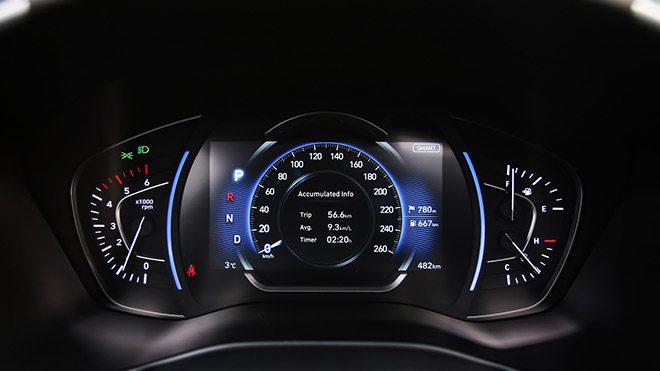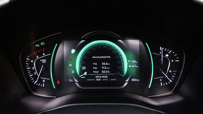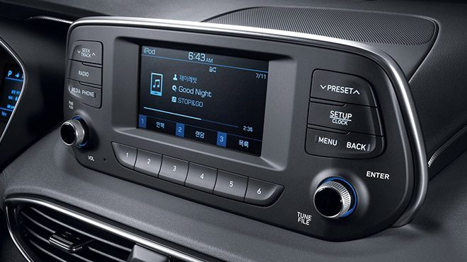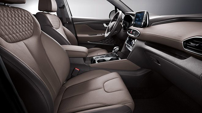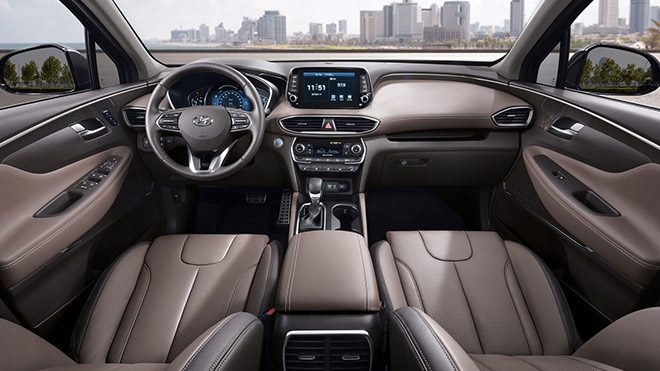 Yerini aldığı jenerasyona göre iç yaşam alanında da ciddi iyileştirmelerin yapıldığı Santa Fe’nin kokpitinin merkezinde 8 inç‘lik multimedya ekran yer alıyor. Sürücü ekranı kısmında da artık güncelleştirmeden nasibi alıyor. Akıllı telefonlar için kablosuz şarj, Apple CarPlay, MirrorLink, direksiyon simidine yerleştirilen özel düğme kullanılarak aktive edilebilen ses tanıma özelliği, çift bölge otomatik klima ve dijital sürücü ekranı daha önceden açıklanan donanımlar arasındaki yerini koruyor.