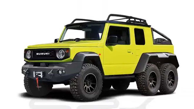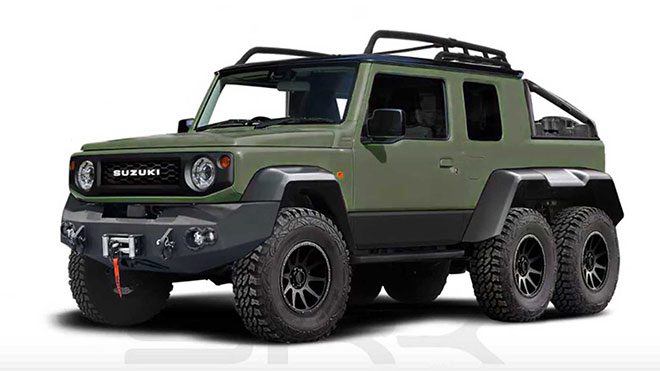 2019 Suzuki Jimny için gerçek dönüşümlerin ardından sanal tasarım çalışmaları da ortaya çıkarken, 6×6 imzası da işin içerisine dahil oldu.