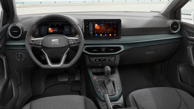 Makyajla birlikte gelen yeni bilgi-eğlence sistemi, iç tasarımın en önemli noktalarından biri.. Büyüyen dokunmatik ekran standart olarak 8,25” genişliğinde; opsiyonel olarak ise 9,2” genişliğinde alınabiliyor. SEAT’ın diğer modellerinden de tanıdık olan 10,25” Dijital Gösterge Paneli de Yeni Arona’daki teknolojik yenilikler arasında yer alıyor. Çok fonksiyonlu spor deri direksiyon simidiyle tamamlanan yumuşak ön göğüs, yenilenen iç tasarımı tamamlıyor. Sürücü ve yolcu tarafı için yeniden tasarlanmış havalandırma ızgaraları, seçilen donanıma bağlı olarak farklı renkte sunuluyor. FR donanımında kırmızı, Xperience donanımında yeşil ve Style donanımında ise gri renkte olan havalandırma ızgaraları; FR ve Xperience donanımlarında LED ambiyans aydınlatmasına sahip.