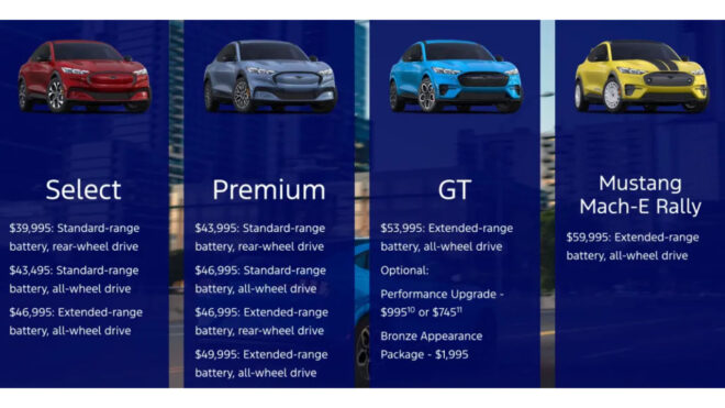Türkiye’de en son gündeme gelen Mach-E modeli Mach-E GT olmuş, araç 6 milyon TL Türkiye fiyatı ile rekabete dahil olmuştu. Bu sportif elektrikli hakkında Ford Türkiye resmi olarak şunları aktarmıştı: “Ford’un ilk elektrikli SUV’u olan Mustang Mach-E’nin en dinamik, en güçlü ve en performans odaklı modeli Mustang Mach-E GT, Türkiye’deki otomobil tutkunlarının beğenisine sunuluyor. Efsanevi Mustang modelinin ruhunu taşıyan Mustang Mach-E GT; sportif, cesur ve yenilikçi tarzıyla cezbedici bir sürüş deneyimi sunuyor. Serinin en heyecan verici aracı olan Mustang Mach-E GT, performanstan ödün vermeyen elektrikli araç müşterileri için tasarlandı.