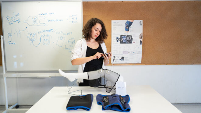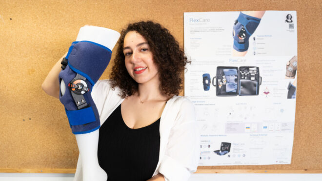 Dizlerinde problem olan, ameliyatlı veya fizik tedavi seanslarına ihtiyaç duyan insanların tedavi için önemli ölçüde zaman kaybetmesi ve zorluklarla karşılaşması. İstanbul Bilgi Üniversitesi Endürstriyel Tasarım bölümünden mezun Zeynep Alkaya’nın geliştirdiği FlexCare, diz hastalıkları için bir diz tedavi kitidir. Tedaviyi hızlandırıyor ve fizik tedaviye kolay erişim sağlıyor. Kit, doktor ve fizyoterapistlerin gözetimi altında stabilizasyon, soğuk terapi ve elektroterapi yöntemlerini birleştiriyor.