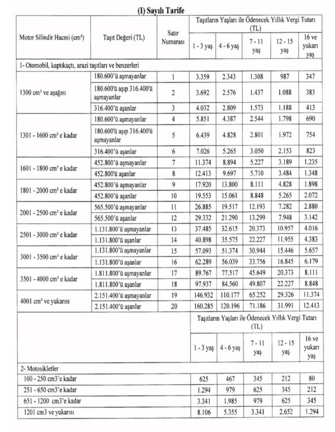 2024 yılında ödenecek Motorlu Taşıtlar Vergisi (MTV) tutarları netlik kazandı. Bu konuda resmi bir tablo gelmiş durumda.