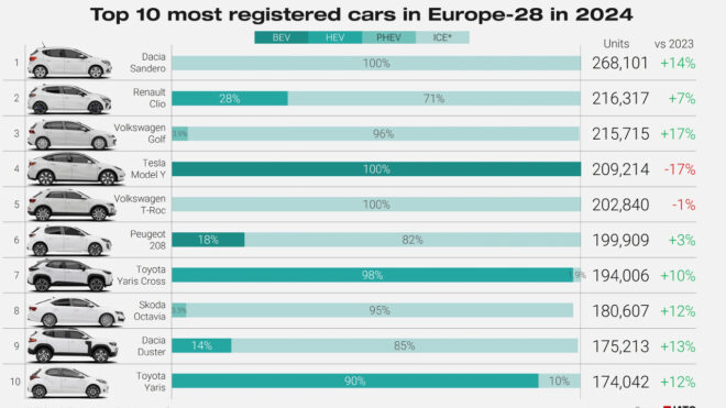 Jato tarafından paylaşılan en son rapora göre 2024 yılında Avrupa’da en çok satılan tamamen elektrikli araç Tesla Model Y oldu.
