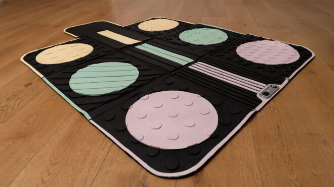 BrailleSteps, altı hücreden oluşan kabartmalı bir yazı sistemi. Mat üzerindeki 12 dairesel bölgenin her biri, 6 Braille hücresine düzenlenmiş bir Braille noktasını temsil ediyor. Her dairenin altında iki adet kuvvet duyarlı direnç (FSR) bulunuyor. Çocuk her iki ayağıyla aynı anda doğru noktalara bastığında, sensörler dijital sinyaller üretiyor ve bu sinyaller düşük enerjili ESP32 mikrodenetleyici tarafından gerçek zamanlı olarak işleniyor. Doğru kombinasyon algılandığında, matın hoparlörü tek notalı bir piyano sesi çalıyor. Başlangıç noktasına döndükten sonra, mobil uygulama ilgili Braille harfinin sesli onayını veriyor. Bir Bluetooth modülü, mat ve uygulama arasında sürekli veri alışverişini sağlıyor. Mat, kinestetik ve dokunsal etkileşimi artıran dokulu, yırtılmaya dayanıklı bir yüzeye ve üç katmanlı bir yapıya sahiptir. Sistem, çift ayak doğrulamasını ve anında geri bildirimi destekleyerek aktif öğrenmeyi ve duyusal katılımı teşvik ediyor.