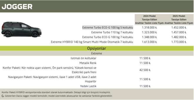 Türkiye’de 2025 model bir sıfır kilometre Dacia otomobil almak isteyenlerin, 31 Mart 2025 itibarıyla en az 1,2 milyon TL ödemesi gerekiyor.
