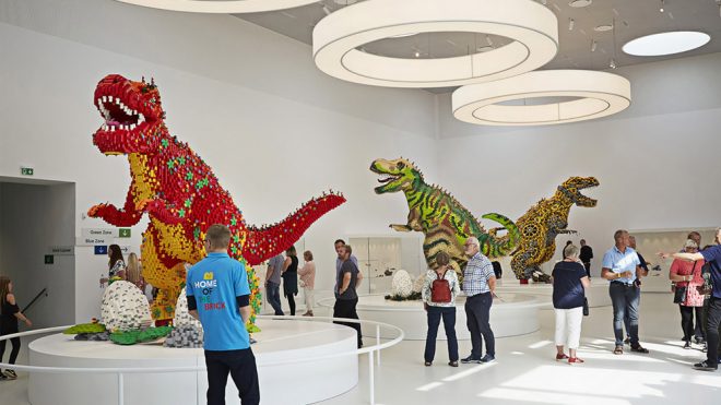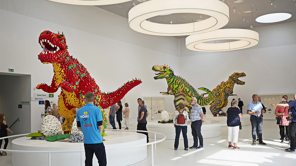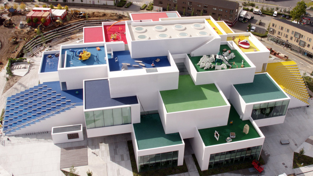 LEGO’nun icat edildiği, Danimarka’nın Billund şehrinde konumlandırılan LEGO House, “Home of the Brick” diye adlandırılıyor. 21 beyaz küpten oluşan bu devasa LEGO evinde küplerin tavanları kırmızı, yeşil, sarı ve mavi olmak üzere dört farklı renkte boyanmış. Her bir renk bir bölgeyi simgeliyor.