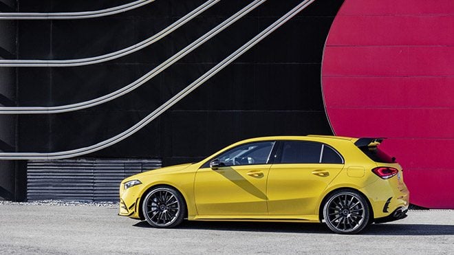 AMG A35 4MATIC’in tasarım konusunda barındırdığı farklar ise daha önceden gördüğümüz örnekler ile büyük oranda kesişiyor. AMG Line paketinde olduğu gibi hava kanalları genişletilmiş tamponlar, ızgara, spoiler ve difüzör gibi gövde parçaları aracın elde ettiği performans kazanımı destekleyici nitelikte değişimlere uğramış durumda. Görünümü de destekleyen bu sistem kokpit bölümünde; direksiyon, özel konfügre edilmiş dijital ekranlar, koltuklar ve karbon fiber kaplamalarla hissediliyor. A45 versiyonunda 400 beygire kadar limitleri genişleyen yeni jenerasyon A-Serisi’nin bu yeni üyesini ekim ayının ilk haftası içerisinde sahnede göreceğiz. Aracın satış sürecinin ise bu yılın sonlarına doğru başlaması bekleniyor.