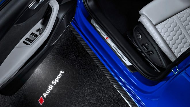 Üzerinde taşıdığı RS logusunun tüm gerekliliklerini tasarımsal ve donanımsal parçalarıyla taşıyan yeni RS4 Avant’a dışarıdan baktığımızda bizleri geniz hava kanalları karşılıyor. Standart A4 Avant’a göre 30 milimetre daha geniş olan bal peteği formlu ızgarayla başlayan bu yapı tamponun her iki tarafıyla tamamlanırken, Quattro imzasını diğer modellerde gördüğümüz gibi burada da görmekten keyif alıyoruz. Arka bölümünde yine diğer RS imzalı modellerden gördüğümüz karbon difüzör ve çift çıkışlı egzozların konumlandırıldığı modelde 19 inç‘lik jantlar standart olarak sunulurken 20 inç opsiyonel olarak satın alınabiliyor. Audi’nin renk seçeneğiyle de geçmişine atıfta bulunduğu bu jenerasyonda sunulan Nogaro Mavisi, 1999 yılında sunulan ilk jenerasyon Avant’a selam gönderiyor.