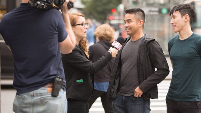 Ekipte bir de haber kanalı muhabiri gibi davranan iki kişi daha bulunuyor. İnsanlar kuyrukta beklerden yoldan geçenlere yeni Apple mağazasının metroya açıldığını ve bununla ilgili ne düşündüklerini soruyor. İnsanların fikri beğendiğini görmek ise biraz şaşırtıcı. Zira New York metro hattı öyle sıcak ve havasız oluyor ki değil mağazayı gezmek, metro beklemek bile eziyete dönüşebiliyor. Öte yandan insanlar gerçekten sırada beklemesinler diye “belirli sayıda” cihaz olduğu vurgusunun yapılmasına rağmen bir çiftin sırada bekleyip olmayan mağazaya inmesi de şakayı hiç olmadığı kadar komikleştiriyor.