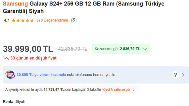 Samsung Galaxy S24 Plus akıllı telefonun kampanyalı fiyatı ne kadar?