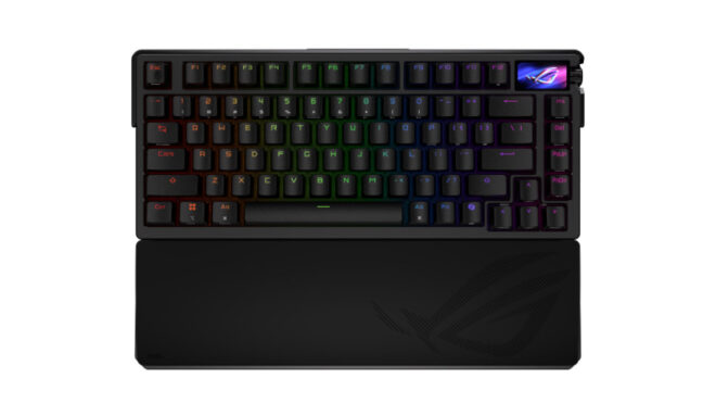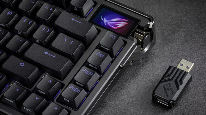 Yüzde 75’lik bir model olan Asus Azoth Extreme, şirketin en “premium” oyuncu klavyesi konumunda yer alıyor. Alüminyum bir gövde üzerine kurulan metal çerçeveli klavyede, karbon fiber bir bölüm de yer alıyor. Sadece siyah renkte hazırlanan kablosuz klavye, LED tuş aydınlatmasını eksik etmiyor. Sağ üst köşesine renkli bir dokunmatik OLED ekran yerleştirilen ürün, bu ekrandan özelleştirilebiliyor ve farklı bilgiler verebiliyor. 500 dolarlık klavyedeki ekranın sağ tarafına özellikle ses açma ve kapatma için kullanılacak döndürülebilir bir kontrol tekerleği yerleştiren Asus, 8.000 Hz polling değerine sahip klavyesi için 1.600 saatlik bir batarya ömrü açıklıyor. Önceden yağlanmış ROG NX mekanik anahtarlar üzerine kurulan klavye, Bluetooth ya da düşük gecikmeli ROG SpeedNova 2,4 GHz RF üzerinden kablosuz olarak bağlantı kurabiliyor. İstenirse kablolu olarak da kullanılabilen oyuncu klavyesi, geniş bir bilek desteğine sahip ve kutusunda tuşlar ile anahtarların rahatlıkla çıkartılabilmesi için ufak bir metal aparata taşıyor. Azoth Extreme modelinin Türkiye satışı hakkında ise henüz yapılmış bir açıklama bulunmuyor. Ürün eğer Türkiye’ye gelirse 25 bin TL gibi bir fiyata satılabilir.