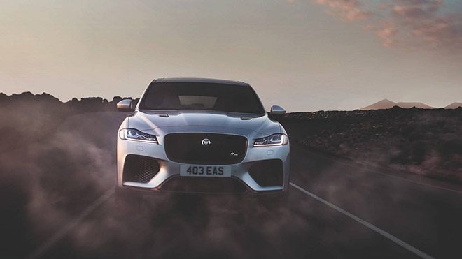 Motor bölümünde süperşarj destekli 5.0 litrelik V8 makineyle bizleri karşılayan Jaguar F-Pace SVR, 550 beygirlik güç ve 680 Nm tork değerlerini kullanıcısının ayağına seriyor. Standart versiyondan 170 beygire varan bir farkla adeta bambaşka bir model haline gelen araç 0’dan 100’e hızlanmasını 4,1 saniyede tamamlarken saatte maksimum 283 km/s’lik hıza erişebiliyor. Tüm bu değerleri 8 ileri otomatik şanzıman üzerinden dört tekerlekten çekişli altyapı eşliğinde yere aktaran F-Pace SVR’daki en temel yardımcılardan birisi aktif yapıdaki elektronik diferansiyel kilidi. Elden geçirilen süspansiyonlarla birlikte aracın viraj kabiliyetine çok ciddi katkı sağlayan bu kilit sürüş dinamiğinin temel parçaları arasında. Bu arada performans kısmına etki edenler arasına 21 inç’lik hafif alaşım performans jantlarını eklemezsek olmaz. Yeni set beraberinde yaklaşık 5,5 kilogramlık ağırlık kazanımını getirmekte.