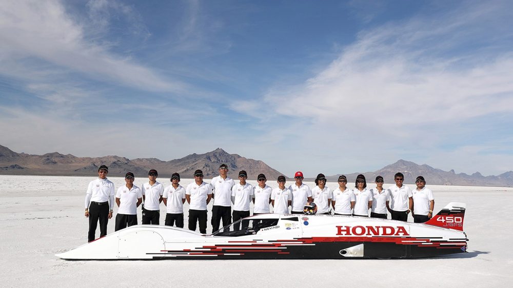 16 Honda mühendisi ile birlikte, başvurular arasından seçilen 100 gönüllü kişinin katılımıyla gerçekleşen proje Amerika’nın Utah eyaletinde test edildi. Honda’nın yarış ekibi geliştirdikleri F1 teknolojisinin yer aldığı model ile 2006 yılında yine Bonneville pistinde 400 km‘lik hız rekoruna ulaşmıştı. Honda’nın şimdiki elde ettiği derece ise çok daha etkileyici.