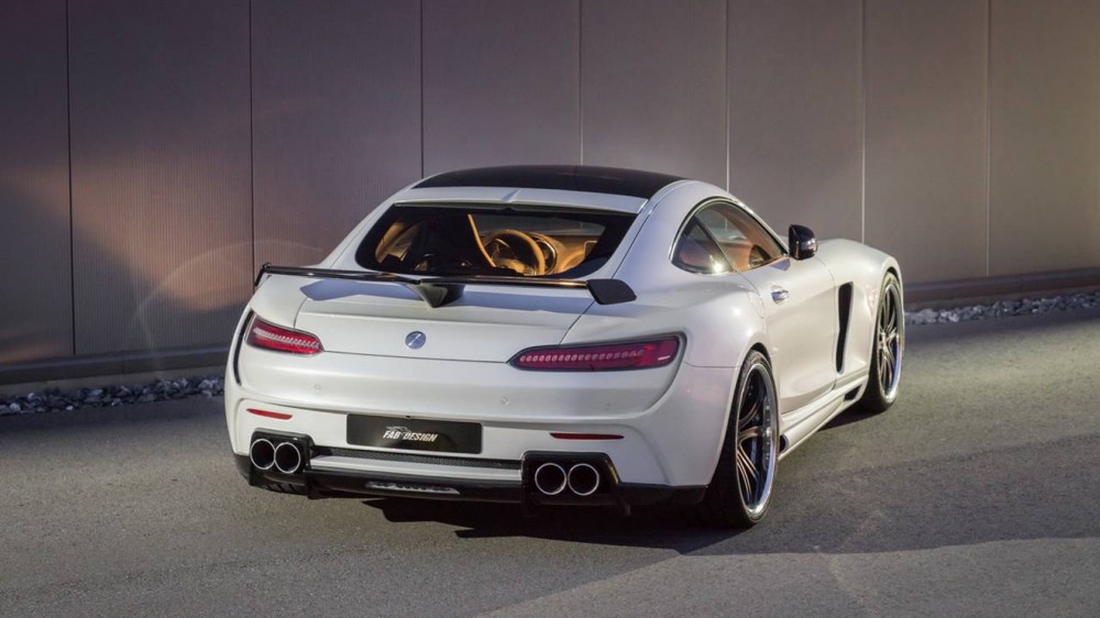 AMG fabrikasından yuvarlak hatlı müthiş aerodinamik gövdesiyle çıkış yapan GT S, FAB Design yorumuyla nispeten daha keskin ve agresif hatlara kavuşmuş. Biraz daha geniş ve etrafı koyu çizgilerle çevrilen ön tampon, oyuk yan etekler, önde 20 inç, arkada 21 inç çapındaki jantlar, dörtlü egzoz tasarımı ve devasa kanadı ilk etapta göze çarpan tasarım değişikliklerinden.