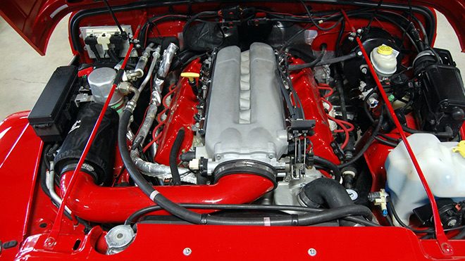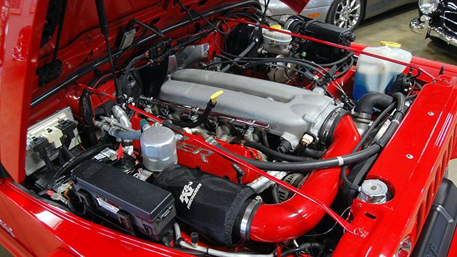 Ateş kırmızı rengi ve tüm çekiciliğiyle karşımızda duran Wrangler’ın motor bölümündeki eşsiz yapısından ötürü zaman kaybetmeden kaputu açarak işe koyuluyoruz. Viper’ı efsane yapan etmenlerden olan 8,3 litrelik V10 makinenin kullanıldığı bu swap projesinde ortaya 500 beygir güç ve 713 Nm tork gibi değerler çıkıyor. Motorun yanı sıra diferansiyel kilidi ve süspansiyonlar başta olmak üzere pek çok bölümünde de arazi performansını artırıcı değişikliker yapılan aracın şanzımanı da özel olarak geliştirilerek entegre edilmiş. Son olara 20 inç’lik jantları ve 35 inç’lik arazi lastikleriyle bezenen bu örneğin halihazırdaki kilometresiyse sadece 36 bin civarında. İnternet üzerinden 52.000 dolar gibi bir fiyatla alıcı bekleyen projenin tüm ilan detaylarına buradan ulaşabilirsiniz.