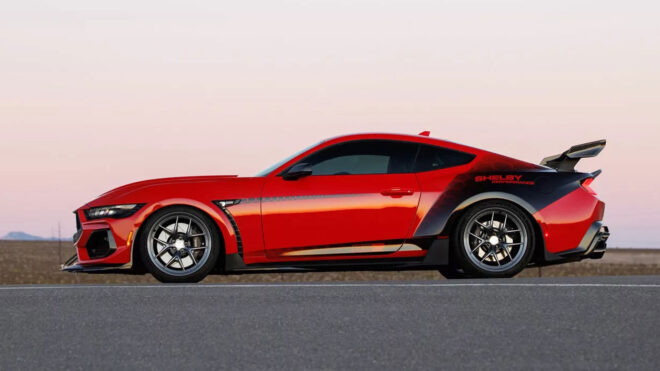 Shelby Super Snake-R, Ford’un 5.0 litrelik V8 motorunu süperşarj ile destekleyerek gücü 500 beygirden tam 850 beygir seviyesine taşıyor. Ford Mustang Dark Horse’un temel alındığı yeni yol canavarı, Tremec imzalı altı ileri manuel ya da istenirse 10 ileri otomatik şanzımanla tercih edilebiliyor. Karbon fiberden üretilen gövde parçalarıyla oldukça kışkırtıcı görünen ve yüksek performansa özel önemli donanımsal güncellemeler taşıyan araç, 20 inç dövme magnezyum jantlar ile geliyor. 225 bin dolar satış fiyatı (bu fiyata donör araç Mustang Dark Horse’un dâhil) açıklanan Super Snake-R, beş farklı renk seçeneğine sahip.
