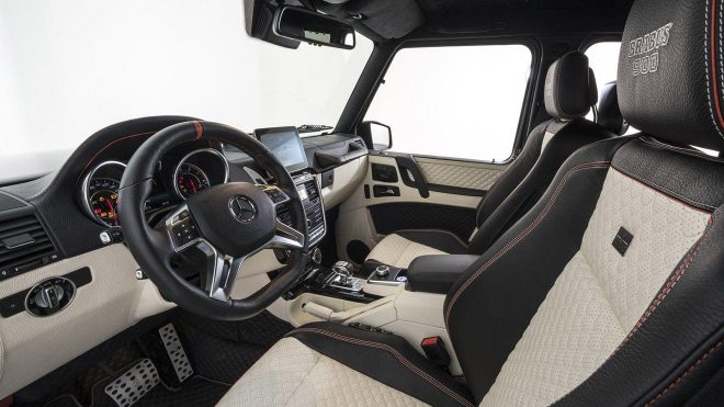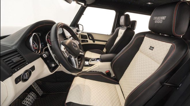 Yakın zamanda dünyanın en güçlü dört kapı cabrio modeli olan 700 beygirlik Mercedes S65 projesinin tanıtımını gerçekleştiren Brabus ekibi, Frankfurt Otomobil Fuarı’na 887 beygirlik güç ve 1.200 Nm tork (Normal şartlarda 1.500 Nm olan değer güvenlik nedeniyle elektronik olarak kısıtlandı.) değerleriyle dünyanın en güçlü V12 arazi aracını getirdi. Toplamda sadece on adet üretileceği açıklanan Brabus G65 900, 666.000 euro’luk etiketiyle de fazlasıyla dikkat çekmeyi başarıyor. Kaputunun altında 6.3 litre hacimli V12 biTurbo makineyle gelen araç performans değerleriyle AMG imzalı standart G65’in ciddi anlamda ilerisinde konumlanıyor. 0’dan 100’e hızlanmasını standart versiyondan 1,4 saniye iyi şekilde 3,9 saniyede tamamlayan araç AMG GT’nin bile önünde. Maksimum sürat değeri 230 km/s’ten 270 km/s‘e çıktığı gözlemlenen aracın bu değerleri yakalamasındaki önemli yardımcılarından birisi de ağırlık kazanımı sağlayan gövde parçaları. Üzerinde 23 inç‘lik jantları standart olarak gelen araç aynı zamanda bir SUV için tasarlanmış en büyük fren sistemine de sahip. Kaput başta olmak üzere tüm gövde komponentleri karbon olan aracın kokpit bölümü de S-Serisi’ni aratmıyor.
