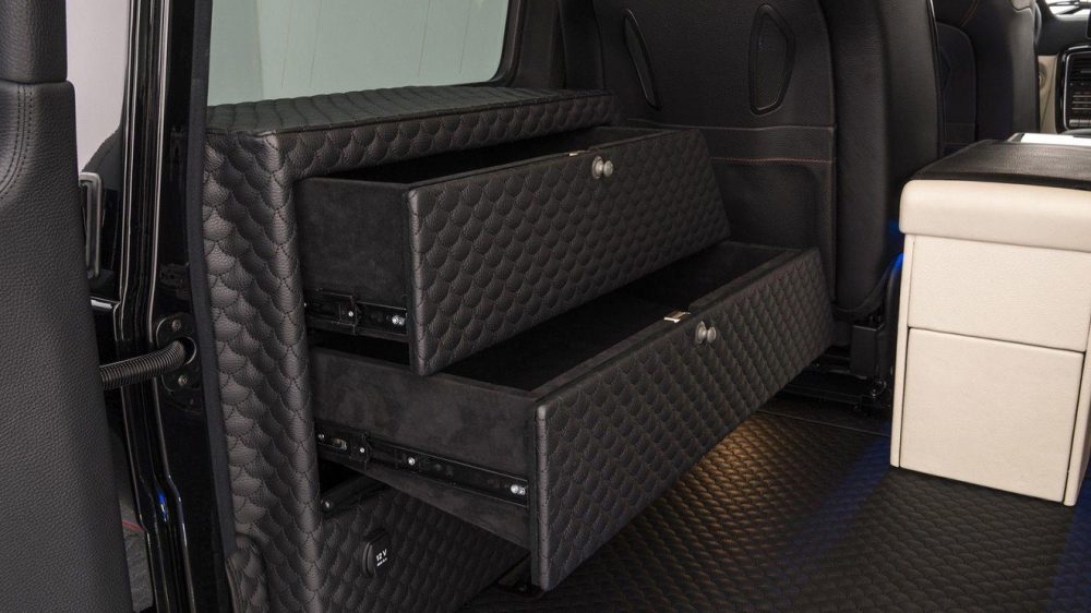 Kabin bölümünün tamamında deri döşemenin hakim olduğu Brabus 900’ün asıl hikayesi arka bölümünde diyebiliriz. S-Serisi’nde olduğu gibi arka koltukları birbirinden bağımsız olması adına platformla ayrılan aracın bu platform bölümünde, 4,3 inç‘lik ekran ve bardaklık (soğutma ve ısıtma destekli) gibi parçalara yer veriliyor. Frankfurt Otomobil Fuarı’nın şimdiden gözdelerinden birisi haline gelen Brabus’ın bu projesi, tüm bağımsız geliştiricilerin çıtasını bir adım ileriye çekmesine vesile olabilir.