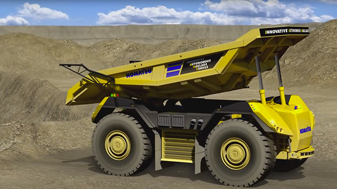 Komatsu’nun sürücü ve yolcu kabini bulunmayan boşaltma kamyonu 2.700 beygir‘lik gücü ile her türlü ağır işin üzerinden gelebilmesi için tasarlandı. TIAHV (The Innovative Autonomous Haulage Vehicle), üzerinde yapılacak geliştirmelerin ardından proje aşamasından üretim aşamasına geçilecek. Komatsu yetkilileri modeli en yakın sürede ürün yelpazesine eklemeyi hedefliyor. Komatsu’nun uzaktan erişimli tamamen insansız canavarı TIAHV’ı Kasım 2016‘da özel bir tanıtım ile Vegas’ta görmemiz mümkün olabilir.