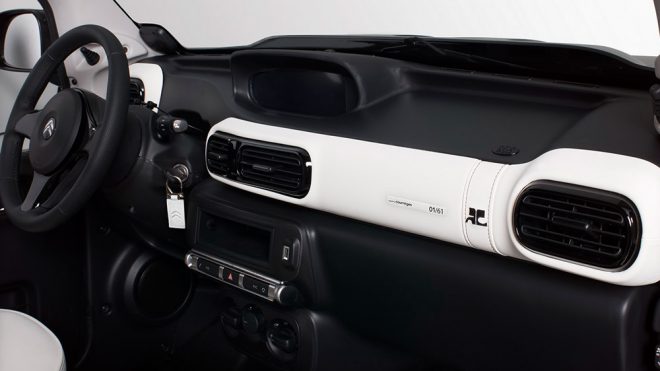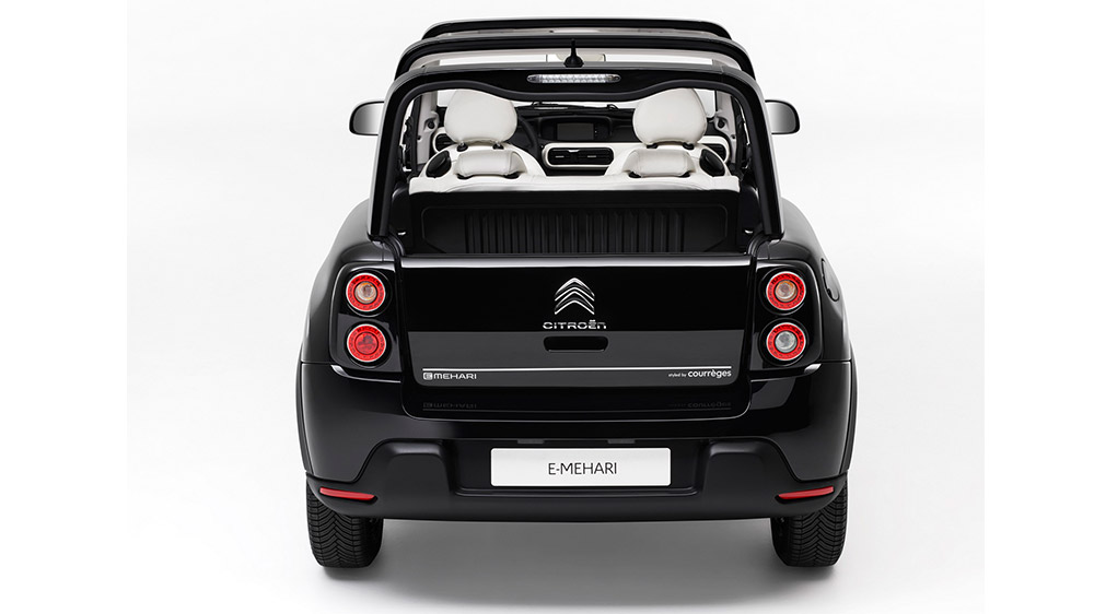Bir önceki E-Mehari versiyonuna göre dış ve iç bölümünde ayırt edilebilir değişimler barındıran araçta, 15 inç büyüklüğünde alaşım jantlar, uzatılmış kanatlar, artırılmış yükseklik ve hakim rengin kokpitte kullanılması bahsettiğimiz du değişimler arasında. Donanım olarak Parrot bluetooth destekli radyo sistemi, iki adet hoparlör ve USB bağlantısı gibi temel bileşenleri barındıran E-Mehari By Courreges’ın tüm parçalarının su geçirmez olduğunun altı çiziliyor. İlk gösterimi 8 Eylül’de Paris Moda Haftası kapsamında Fransa’da yapılacak olan E-Mehari By Courreges Limited Edition, hemen ardından Frankfurt Otomobil Fuarı’ndaki Citroen standındaki yerini alacak.