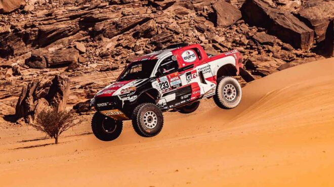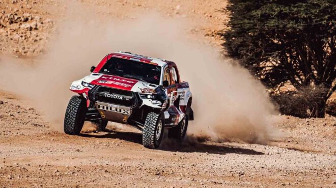 Revize edilen altyapı elemanlarıyla 2022 Dakar Ralli’sine çıkan Toyota Hilux GR DKR T1+ versiyonu, pilot ekibiyle birlikte liderliğe oturdu.