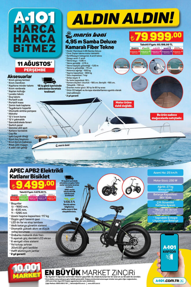 Hatta firma zaman zaman çok şaşırtıyor, “tekne” gibi büyük ürünleri de satıyor. Peki A101 özelinde bu haftanın ürünleri, bu haftanın yıldızları neler? Firmadan bu konuda gelen güncel poster paylaşımlarını direkt olarak sayfanın en üstündeki dikey galeride görebilirsiniz.