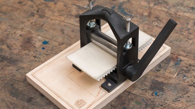 Yaratıcı kartlar basmak, özel tasarımlar oluşturmak ya da kendi oyma resimlerinizi kullanmak istiyor ancak işin bütçe ve pratiksizliği altından kalkamıyorsanız Martin Schneider hayli ilginç bir proje sunuyor. Geçtiğimiz yıl mini matbaa cihazını ortaya çıkaran Schneider, Open Press Project adını verdiği bu projeyi tamamen açık kaynak kodlu olarak geliştirmiş. 3D yazıcı sahibi herkesin yaklaşık 5 euroluk bir malzeme harcayarak basabileceği bu mini matbaanın baskı planları Schneider tarafından ücretsiz olarak internetteki yerini alıyor. “Dünyanın en masrafsız matbaası” olarak da öne çıkan bu mini cihaz içinse şimdilerde işleri büyüten Schneider, 3D yazıcı sahibi olmayan kullanıcıların da bu sevimli cihazı kullanabilmesine olanak tanıyor.