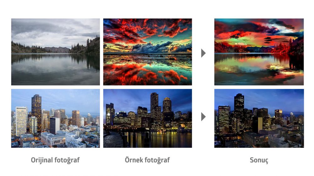Sistem haberimizin girişindeki fotoğrafta gördüğünüz üzere bir orijinal bir de örnek fotoğraf ile çalışıyor. Derin fotoğraf tarzı transferi sayesinde ikinci fotoğrafın tarzı ilkine aktarılıyor. Avrupalı bilim adamlarının geliştirdiği nötr stil transferinin aksine burada yapay zeka tüm fotoğrafı aktarmıyor. Genel olarak karenin içinde yer alan renklerine odaklanıyor. Yani fotoğraf içinde nerenin obje, nelerin gökyüzü olduğunu ayırt edebiliyor. Derinlemesine analizin ardından tarzın temelini oluşturan kısımlar kullanılıyor. Bu sayede iki fotoğraf üst üste bindirilmiş gibi görünmüyor. Orijinal fotoğrafın renkleri ve havası örnek kareye aktarılabiliyor.