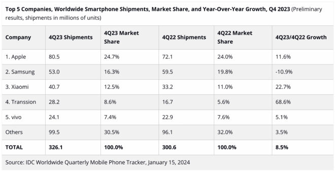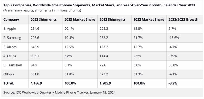 Akıllı telefon tarafında 2023 yılının lideri Apple oldu