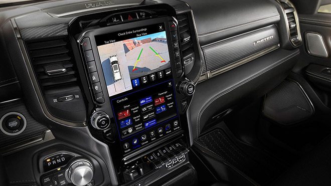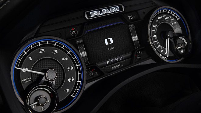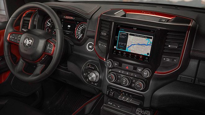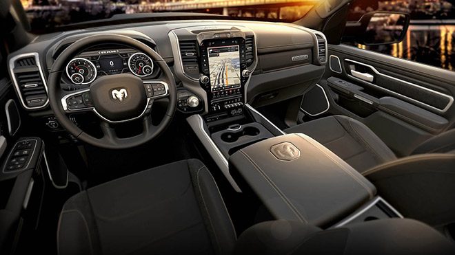 2019 Dodge Ram 1500’ün kullanıcıların aklını çelme potansiyeli yüksek bir diğer kısmı ise kesinlikle kokpiti. Özellikle konsolun merkezine dikey olarak konumlandırdığı 12 inç‘lik multimedya ekranla (Donanım seviyelere göre ekran boyutları 5 ve 8,4 inç olarak değişiyor.) akıllara Tesla’yı getiren Dodge, malzeme kalitesi ve ergonomide de hatırı sayılır iyileştirmelerin yapıldığının altını çiziyor. İçerisini gerçek deri, ahşap ve metalik parça kombinasyonuyla güçlendiren marka, sadece burada 38 litrelik saklama alanı sunarak rakipleriyle arasına önemli bir mesafe koymayı başarıyor. Teknolojik asistan konusunda ise elimizde şu anda 360 derece kamera, kör nokta uyarı, adaptif hız sabitleyici, çarpışma öncesi frenleme ve şeritte tutma asistanı gibi özellikler mevcut. Son olarak yeni Dodge Ram’de altı farklı donanım paketinin sunulduğunu da belirtmekte fayda var.