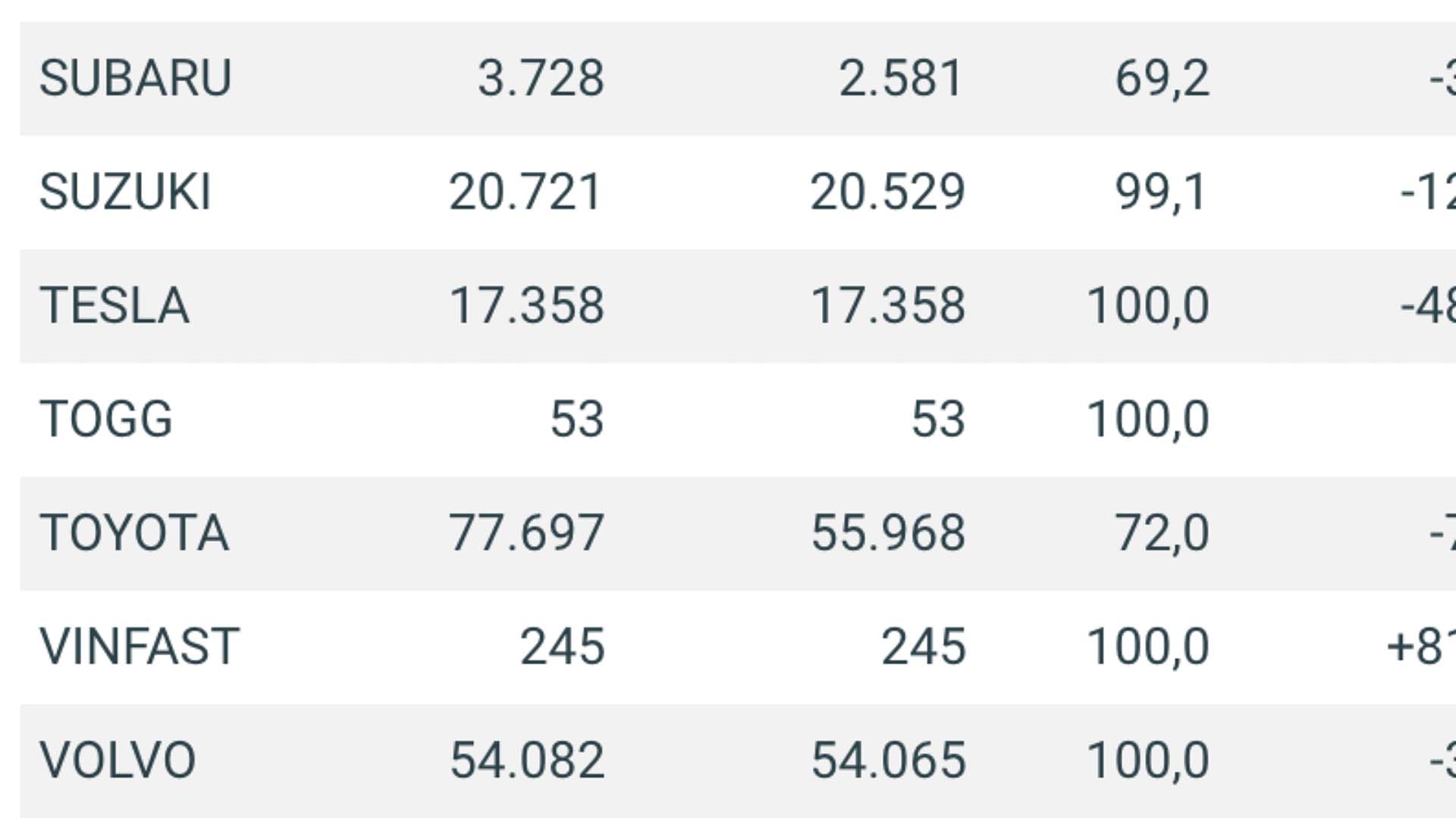 Zeyd Acar tarafından Almanya Federal Motorlu Taşımacılık Dairesi’nin (KBA) resmi verileri temel alınarak paylaşıldığı kadarıyla ülkede kasım ayı itibarıyla toplam 53 adet Togg T10F ve T10X tescil edilmiş. Şirket Almanya’da daha fazla T10F ve T10X satmış olabilir ancak kasım sonu itibarıyla Almanya yollarında 53 adet yerli otomobil modelinin bulunduğu görülüyor. Togg, Almanya sevkiyatlarına resmi olarak 1 Kasım tarihinde başlamıştı. Bu konuda yaptığı paylaşımda, “Almanya’daki ilk teslimatlarımız başladı! Türkiye’de geliştirilen ve üretilen Avrupa’nın en güvenli üç aracından ikisi olan Togg T10X ve T10F artık Almanya yollarında.” diyen şirketin Almanya merkezli son açıklaması şöyle olmuştu: “Almanya teslimatlarımız hız kesmeden sürüyor. Türkiye’de geliştirilen ve üretilen Togg, Almanya’da kullanıcılarıyla buluşmaya devam ediyor.”