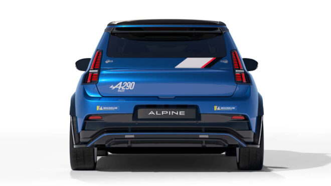 Uygun kategorilerde yarışa uygun özelliklerle tasarlanan ralli aracı Alpine A290 Rallye, 60 bin euro fiyat etiketine sahip. Beyaz renkli ikonik ralli jantları (EVO Corse 8, 18 inç) üzerinde yol alan model, taşıdığı tek bir elektrik motoru üzerinden ön lastiklere 220 beygir güç ve 300 Nm tork aktarıyor. ZF sınırlı kaydırmalı diferansiyelin kullanıldığı araç, 0’dan 100 km/s hıza 6,4 saniyede seviyesinde çıkabiliyor. Michelin Pilot Sport lastiklerin tercih edildiği A290 Rallye, standart A290’daki gibi 52 kWh batarya taşıyor. FIA onaylı “roll cage” ile donatılan ralli aracında ALP yarış süspansiyonları kullanılıyor ve önde 350 mm, arkada ise 280 mm disklerin tercih edildiği güçlü bir fren sistemine yer veriliyor. Dar virajlar için hidrolik el freninin bulunduğu araçta, Sabelt imzalı yarış koltuklarına yer veriliyor.