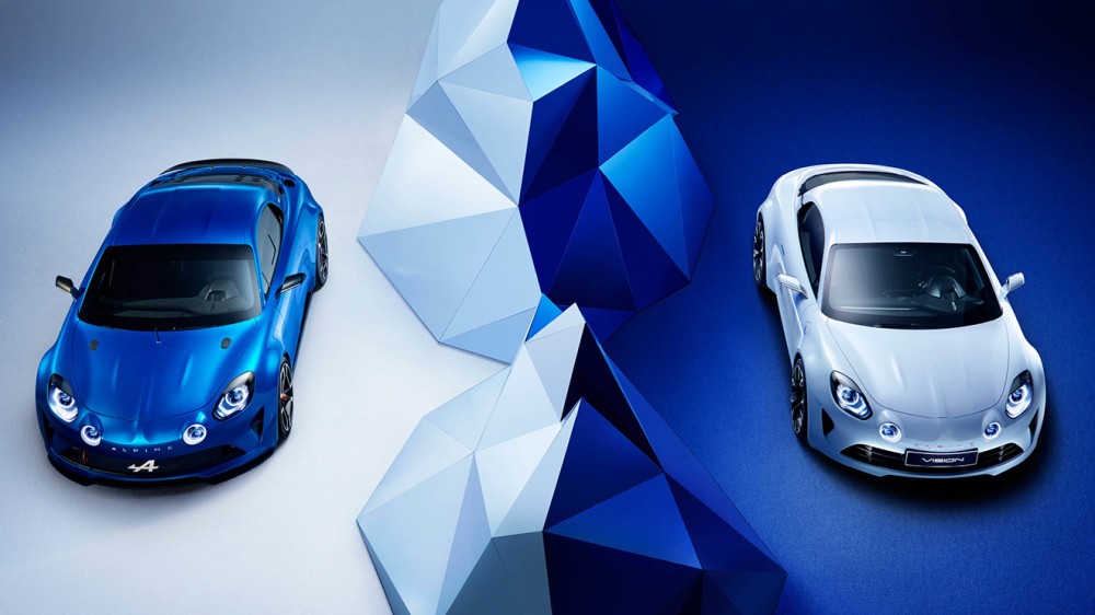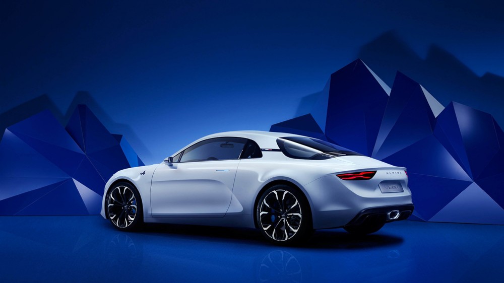 Şimdiye kadar ortaya çıkan Alpine konseptlerinden en çok Celebration ile benzerlikler taşıyan otomobil, klasik ve modern tasarım anlayışını aynı gövdede buluşturuyor. Ön tamponda karşımıza çıkan retro çizgiler, arka bölüme doğru yerini daha modern bir anlayışa bırakıyor. Yuvarlak sis farları, büyük jantlar, arkaya doğru sivrileşen basık tampon tasarımı ve tam ortada yer alan egzoz çıkışı otomobilin dış tasarımını vurgulayan detaylardan. Sportif duruşunu kabine de yansıtan Alpine Vision, bu duruşunu yarış otomobillerindeki gibi yandan destekli sportif koltukları ve emniyet kemeri, dijital gösterge peneli, şalter benzeri düğme takımı gibi detaylarla taçlandırıyor.