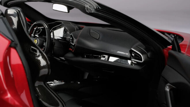 Çok uzun yıllardır model – minyatür araç tarafında pazarın açık ara en iyi örneklerini geliştiren firmalardan birisi olan Amalgam Collection, bu sefer 1:8 boyutunda hazırlanan Ferrari 296 GTS ile ses getiriyor. Yurt dışı fiyatı tam 16 bin dolar seviyesinde olan (1 Ağustos 2023 itibarıyla olası vergiler hariç yaklaşık 430 bin TL) bu modelden toplamda 199 adet üretileceği aktarılıyor. Her örneğin tam 300 saatlik bir el emeği sonrasında hata bulacak model araç, Amalgam Collection imzalı diğer seçenekler gibi gerçekten inanılmaz iyi görünüyor. İçte ve dışta en ufak detayına kadar birebir aynı tasarlanan çünkü Ferrari’den gelen resmi CAD dosyaları kullanılan 296 GTS, gerçeği gibi çıkarılabilir tavan ile geliyor ve gönderildiği kutusunda konumlandırma ya da inceleme sırasında gövde üstünde parmak izi kalmaması için özel beyaz eldivenler yer alıyor. Ultra zenginlerin yüksek ihtimalle büyük bölümünü çoktan satın aldığı 1:8 araç için firmanın açıklamasına göre toplamda 3 bin saatlik bir geliştirme çalışması yapılmış.