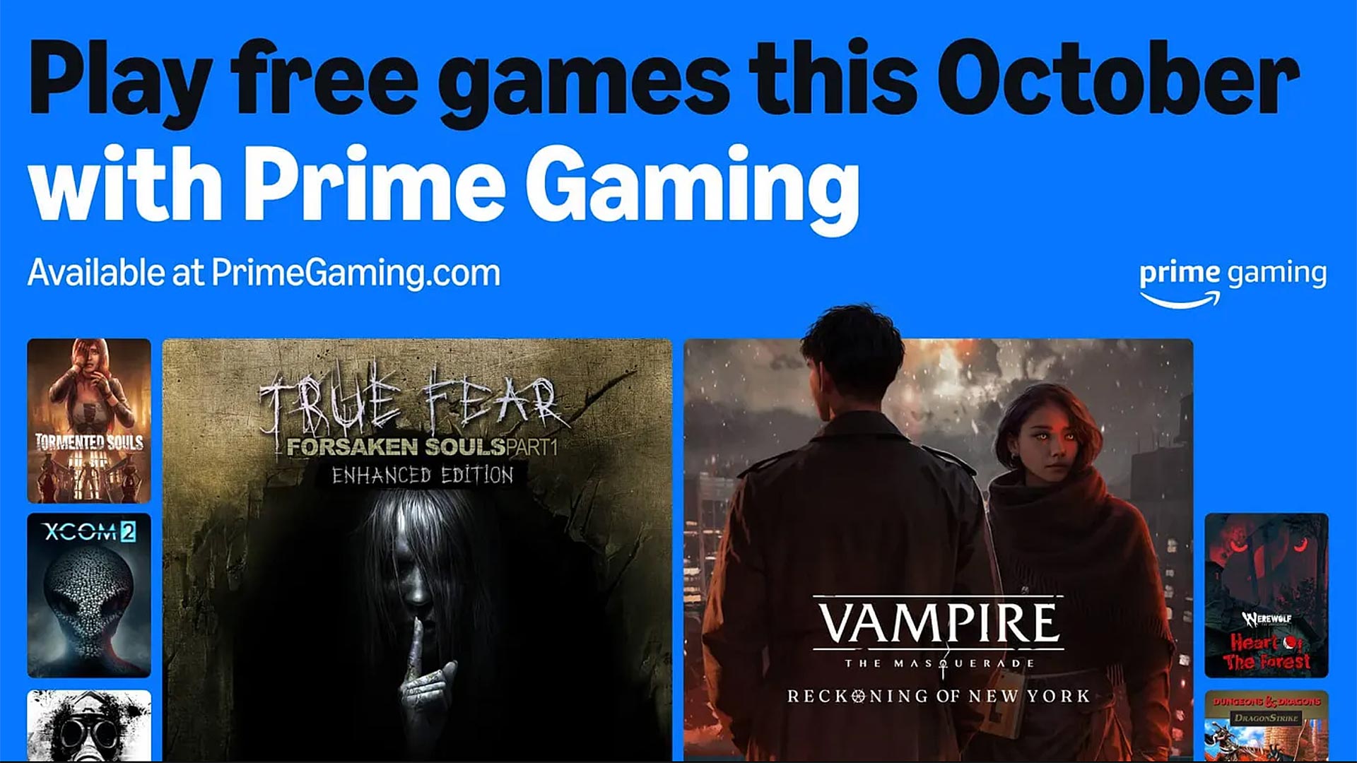 Resmi paylaşıma göre Amazon Prime üyeleri ekim ayında herhangi bir ekstra ücret ödemeden şu oyunların sahibi olacak“DragonStrike, Vampire: The Masquerade — Reckoning of New York, Tormented Souls, EMPTY SHELL, Fallout: New Vegas Ultimate Edition, True Fear: Forsaken Souls Part 1, XCOM 2, Hellslave, True Fear: Forsaken Souls Part 2, Lost & Found Agency Collector’s Edition, Fallout 3: Game of the Year Edition, You Will Die Here Tonight, Werewolf: The Apocalypse — Heart of the Forest ve Halloween Stories: Horror Movie Collector’s Edition.” Eylül ayında şu oyunlar verilmişti: “Dungeons & Dragons: Ravenloft Series, Into The Breach, Sid Meier’s Civilization IV: The Complete Edition, Afterimage, Spelljammer: Pirates of Realmspace, Tower of Time, Subterrain: Mines of Titan, Residual, FATE: The Cursed King, Mystical Riddles: Ghostly Park Collector’s Edition ve Pixel Cafe.”Ağustos ayında şu oyunlar verilmişti: “Sid Meier’s Civilization III Complete, THIEF: Definitive Edition, FATE: The Traitor Soul, Filthy Animals | Heist Simulator, City Legends: The Ghost of Misty Hill Collector’s Edition, The Academy: The First Riddle, Tin Hearts, Necroking, Labyrinth City: Pierre the Maze Detective, Silver Box Classics, Heroes of Loot 2 ve Fantasy Empires.” Temmuz ayında verilen oyunlar ise şunlar olmuştu: “Boxes: Lost Fragments, Paquerette Down the Bunburrows, ENDLESS Space 2 Definitive Edition, Besiege: The Splintered Sea DLC, Venba, I Love Finding Wild Friends Collector’s Edition, Heroes of Loot, Saints Row IV: Re-Elected, STAR WARS: Rebellion, Saints Row 2, TOEM, Dungeon of the ENDLESS Definitive Edition ve Tomb Raider I-III Remastered Starring Lara Croft.”
