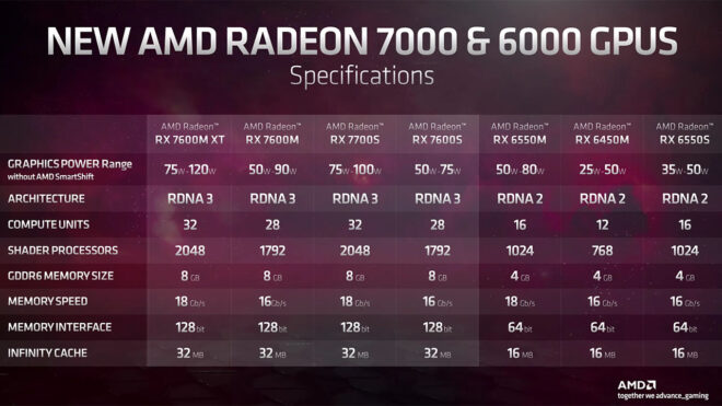 Masaüstü için hazırlanan Zen4 temelli AMD Ryzen işlemciler 7950X, 7900X, 7700X ve 7600X sonrasında CES 2023 duyuruları yapıldı ve burada ilk olarak RDNA 3 temelli RX7600 serisi dizüstü ekran kartları görücüye çıkarıldı. Firmanın yeni ailesinde Radeon RX 7600M XT, RX 7600M, RX 7700S ve RX 7600S yer alıyor. Burada şovun yıldızı olan RX 7600M XT, AMD’nin kendi açıklamasına göre masaüstü sınıfı RTX 3060 ile benzer grafik performansını dizüstülere getiriyor. Aktarıldığı kadarıyla bu kart Assassin’s Creed Valhalla gibi bir oyunu 1080P’de 100 fps oynatabiliyor. Yeni grafik birimlerinin teknik detayları şöyle: