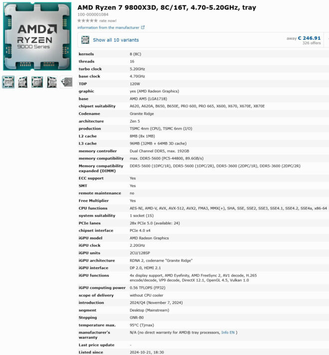 AMD Ryzen 7 9800X3D için tüm kilit detaylar sızdırıldı