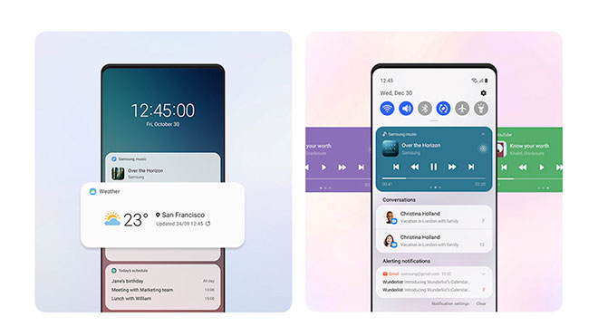 Buna göre yeni sürüm Samsung tarafından ilk olarak gelişmiş video / müzik kontrol altyapısı ile öne çıkarılıyor. Kişiler yukarıdan açılan menüde örneğin YouTube ile Spotify medya kontrolleri arasında hızlıca kaydırma yaparak geçiş yapabiliyor. Bildirim panelini de geliştiren yeni sürüm One UI 3.0, telefon kilitliyken dahi bildirim menüsünde tek bakışta hiç olmadığı kadar çok konuda bilgi verebiliyor. Katlanabilir telefon Galaxy Z Fold2’nin kullanıcı deneyimini de hatırı sayılır oranda artıran yeni sürüm, aynı zamanda dinamik kilit ekranı ile geliyor. Bu yapıda kilidi her açtığınızda duvar kağıdının değişmesini ayarlayabiliyorsunuz. Wonderland ile hareketli duvar kağıtları getiren sürüm, Pentastic ile S Pen komutlarında özelleştirme sunuyor. Android 11 temelli Samsung One UI 3.0 ile ayrıca tam ekran video görüşmeleri de destekleniyor.