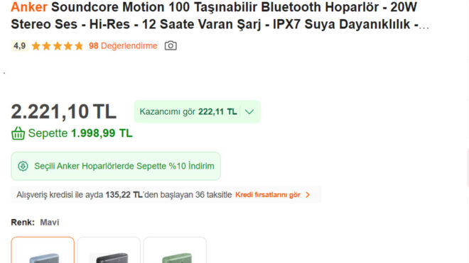 Anker Soundcore Motion 100 kablosuz hoparlörün indirimli fiyatı ne kadar?