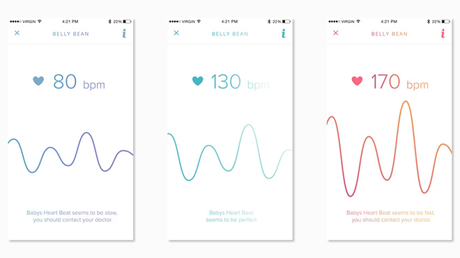 Şimdiye kadar anne ve babaların hayatını kolaylaştıran birçok teknolojik ürün kullanıma sunuldu. Yakın zamanda kalp atışlarını dinleten veya bebeğin ne kadar anne sütü içtiğini ölçen cep telefonu aksesuarları gün yüzüne çıkmıştı. Şimdi karşımızda birçok farklı özelliği bir araya getiren bir tasarım var. Kablosuz bu sistemi kullanabilmek için Belly Bean uygulamasını bir akıllı telefona indirmek gerekiyor. Ardından karna yerleştirilen cihaz bebeğin kalp atışlarını gözlemlemeye başlıyor. Elde edilen bilgiyi saklıyor ve analiz ediyor. Bu sayede hamilelik sırasında bebeğinin sağlığından şüphe eden anneler her seferinde doktora gitme derdinden kurtuluyor. Tabii bu uygulamayı kullanırken düzenli kontrolleri de aksatmamak gerekiyor.