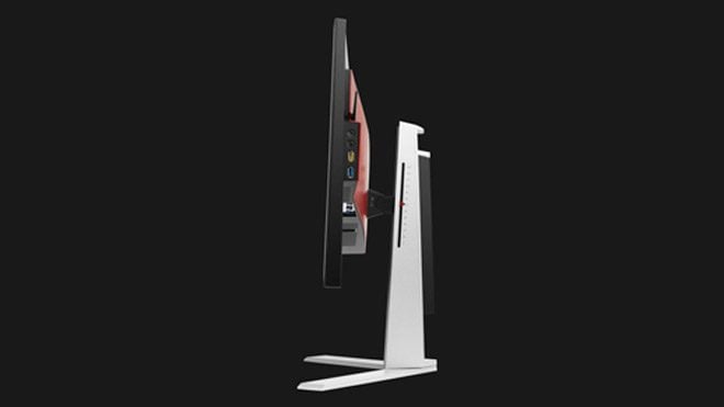 Monitör için “çok zarif bir tasarımı var” diyemeyeceğiz. Hemen her oyuncu monitöründe olduğu gibi kaba ve çıkıntılı hatlara sahip. Kırmızı ve siyah renklerin hakim olduğu monitörün arka gövdesindeki kırmızı alan arkaya doğru monitörü kalınlaştırıyor. Ancak neyse ki monitörün arkasını pek görme şansımız olmuyor. V şeklinde bir stantla gelen monitörün standının masada kullanıcıya alan tanıması hoş bir detay olmuş. Ayrıca sağlam bir tutuş hissi uyandırdığını da söylemek mümkün. Monitörün ekran ayarını yapmak ise çok kolay. İki kenarından tutarak minimum güçle cihazın yüksekliğini ayarlayabiliyor, yine aynı şekilde sağa doğru hafif bir güç uygularsanız ekranı dikey konuma getirebiliyorsunuz. Tabii aynı şekilde ekran eğimini de ayarlayabiliyorsunuz. Ön cephesine baktığımızda olabildiğince ince çerçeveler bizi karşılıyor ki bunu artı hanesine yazıyoruz. İnce çerçeveler deneyimi iyileştirirken görsel açıdan da daha etkileyici bir görünüm sunuyor.