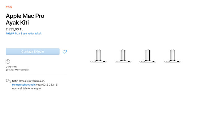 Apple‘ın “Rendeye” benzetilen profesyonel bilgisayar modeli Mac Pro, biliyorsunuz uzun süredir satışta bulunuyor. Aşırı sessiz olması, modüler yapısı ve performansıyla Mac dünyasında beğeni toplayan bilgisayar, istenirse sabit bacaklar, istenirse de tekerlekli olarak alınabiliyor. İşte bu bacaklar ve tekerlek sonunda ayrı birer aksesuar olarak da satışa sunuldu. Mac Pro’yla beraber alındığı zaman toplam rakama 3.200 TL eklediği tekerleklere Apple, harici satışta tam 5.599 TL fiyat istiyor. Bu da dört adet “yerleşik freni olmayan” tekerlekler için inanılmaz görünüyor. Apple’ın yüksek kaliteli bacaklar için istediği rakam ise tam 2.399 TL seviyesinde. Bu da profesyonel bir sistem için olmasına rağmen çok yüksek görünüyor. Firma biliyorsunuz Pro Display XDR isimli üst düzey monitörünün bacağını da ayrı olarak tam 7.199 TL‘ye satıyor. Bu monitör için VESA montaj adaptörü ise 1.499 TL seviyesinde karşımıza çıkıyor.